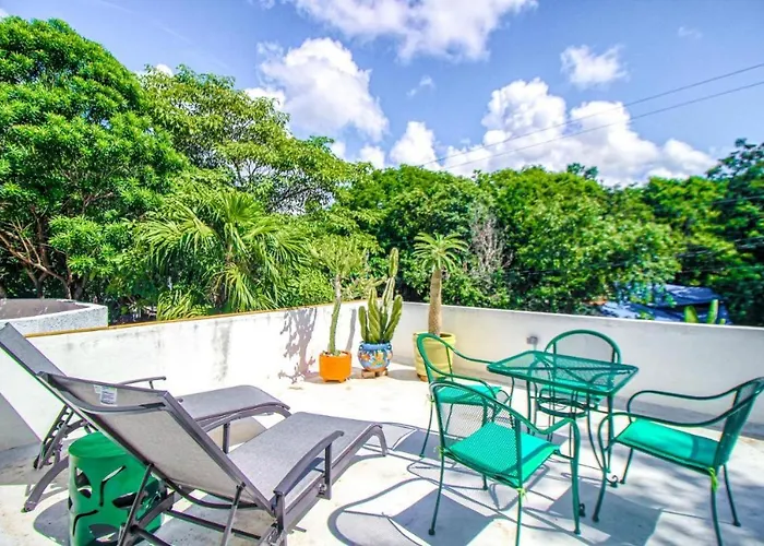 En la cocina hay un hervidor eléctrico, nevera y un horno, además de otros utensilios para cocinar, como servicio de tetera/cafetera. Los huéspedes disfrutarán de platos de cocina mexicana, servidos en el restaurante La Parroquia de Veracruz, que está a 200 metros. También está Playa del Carmen - Tulum, la estación de autobuses, situada a tan solo 1 km. Este alojamiento ofrece terraza solárium y patio.